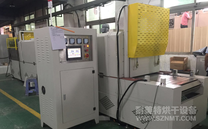 烘干部分總長4800mm,前后配自動(dòng)提升門,緩沖區(qū)兩端各長300mm,冷卻區(qū)長1200mm, 進(jìn)料部分長600mm,出料部分升降接駁臺長700mm ;